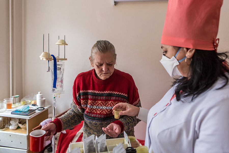 Una enfermera distribuye la medicación a los pacientes de hospital de Zhytomyr.Fotografía: Oksana Parafeniuk. OKSANA PARAFENIUK