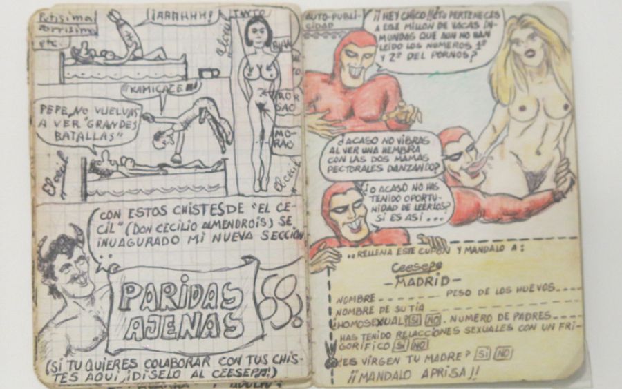 Elsa asegura que "El mayor coleccionista de Ceesepe era él mismo", gracias a lo cual se conservan hasta sus cuadernos del colegio y sus primeros cómics que hizo con 13 o 14 años y en los que ya se veía su espíritu subversivo. Son cómix del tamaño de una cajita de cerillas que son increíbles. Miniaturas que se titulan pornos y que con el título ya nos indican de qué van. Ceesepe se inventaba su propia pornografía que, en aquella época no era tan accesible como ahora".