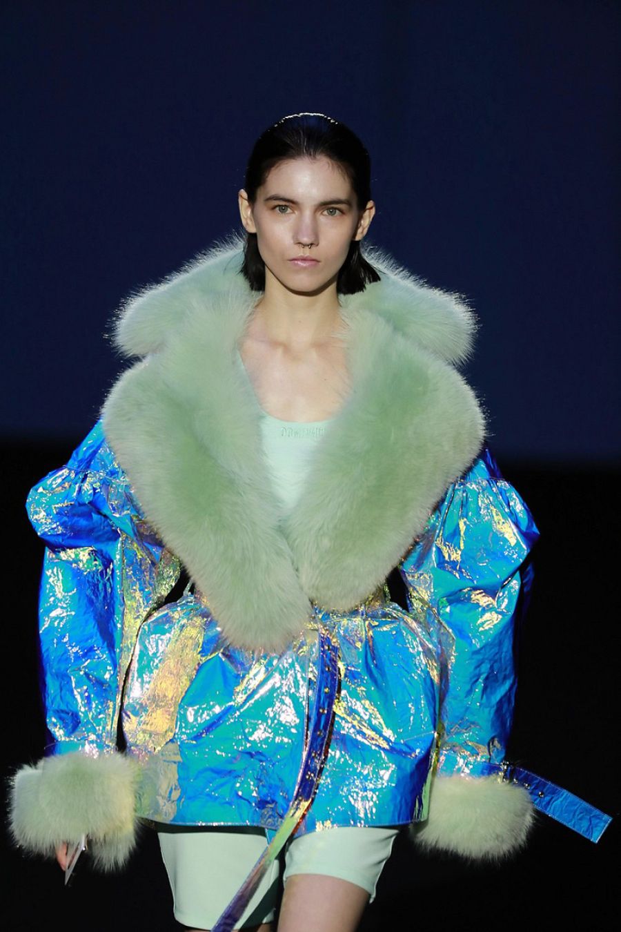 Lolitas vemos en su pasarela que ofrece un mix de ideas, conceptos, estéticas y vanguardias que dan forma y color, una propuesta potente, alegre por fuera y seria por dentro. Dominnico corta y cose muy bien, y trabaja comodamente con todo tipo de tejidos, por muy complicados u osados que sean. "Hay pelo natural, de zorro y cabra, napa con acabados tan distintos como los laminados o apastelados. Y he hecho un tejido muy especial con Gatacrós que es igual al que usa John Galliano en Margiela".