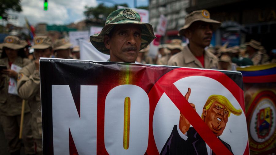 La caraqueña, cartel en mano, ha dicho que Trump es un "pillo" (pícaro) que, sin embargo, no logrará sacar del poder a Maduro, a quien EE.UU. ve como un gobernante ilegítimo.