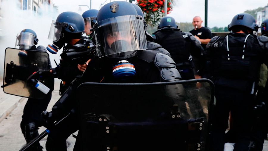 Gendarmes franceses durante los disturbios en Bayona.