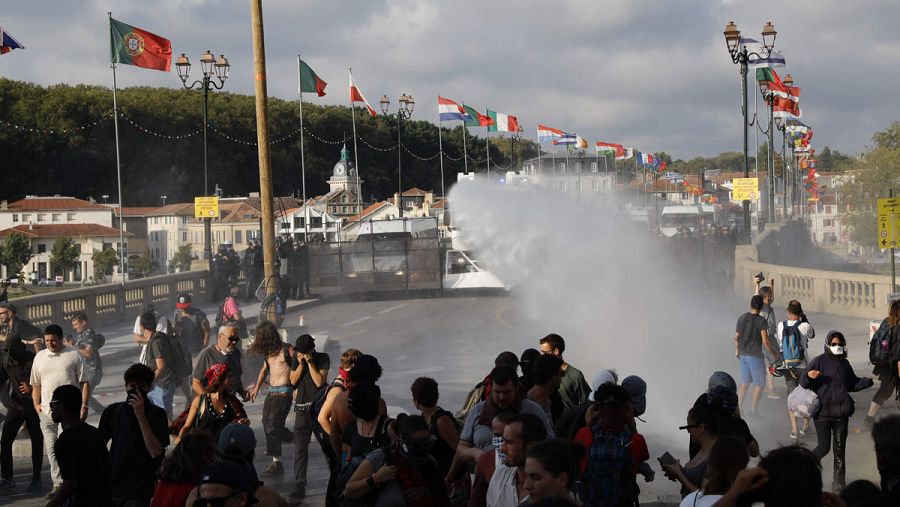 Los principales altercados han tenido lugar a última hora de la tarde de este sábado en el centro de Bayona, a muy pocos kilómetros del faro de Biarritz donde empezaba la cumbre, cuando unos pocos cientos de personas se han concentrado en el centro de Bayona en una manifestación que no había sido declarada.