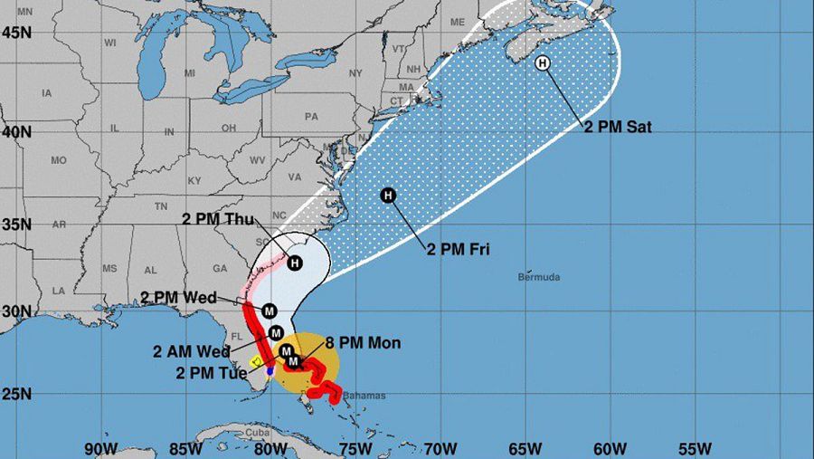 Este miércoles rolará hacia el norte, mientras avanza en paralelo a la costa de Florida y antes de amenazar el litoral de los estados de Georgia y Carolina del Sur ese día y el de Carolina del Norte el jueves.