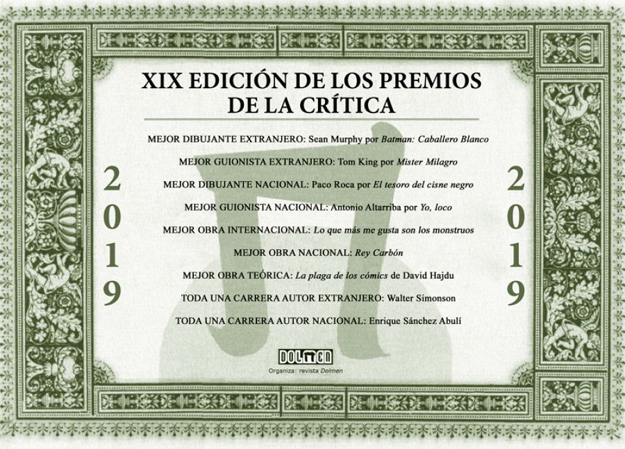 La ceremonia de clausura de las Jornadas del Cómic de Avilés ha sido un año más el escenario elegido para hacer públicos los Premios de la Crítica organizados por la revista de información sobre cómic Dolmen. Estos son los ganadores.