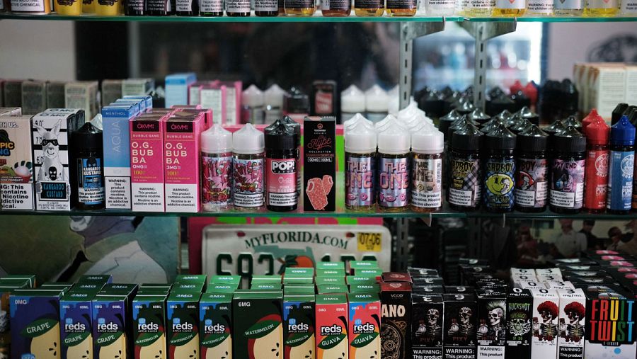 Imagen de varios productos de vapeo en una tienda de Nueva York.