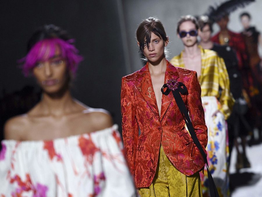 Llaman la atención las osadas mezclas de tejido. A veces contrastados en un look y otras en una misma prenda.Esta colección, dicen, “invita a evadirse de la actualidad política, económica y social tan sombrías para abrazar un espíritu más radical, optimista, inclusivo y extravagante”.