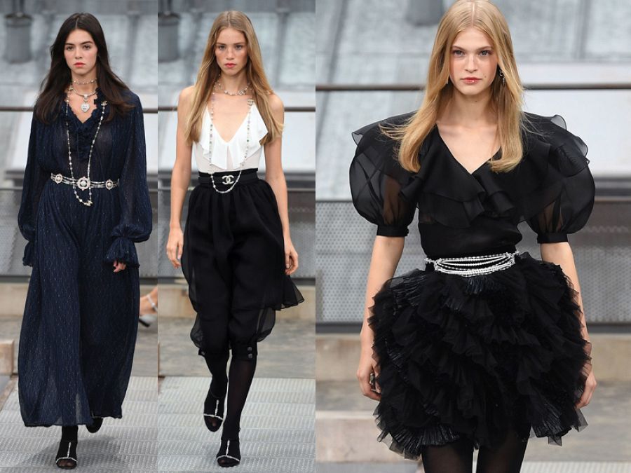 Los preceptos de Mademoiselle Coco -con un potente discurso feminista- vuelven a ponerse de moda: su minimalismo, el gusto por el negro, los pantalones, la masculinidad evidente... Viard los retoma y los rehace al gusto del siglo XXI pero introduce golpes de color, tejidos y formas ochenteros que dinamizan la colección. Hay una clara vuelta a los clásicos de la casa, hay un claro homenaje a la fundadora, a la mujer que cambió las reglas y creó todo un universo estético que hoy sigue vigente.