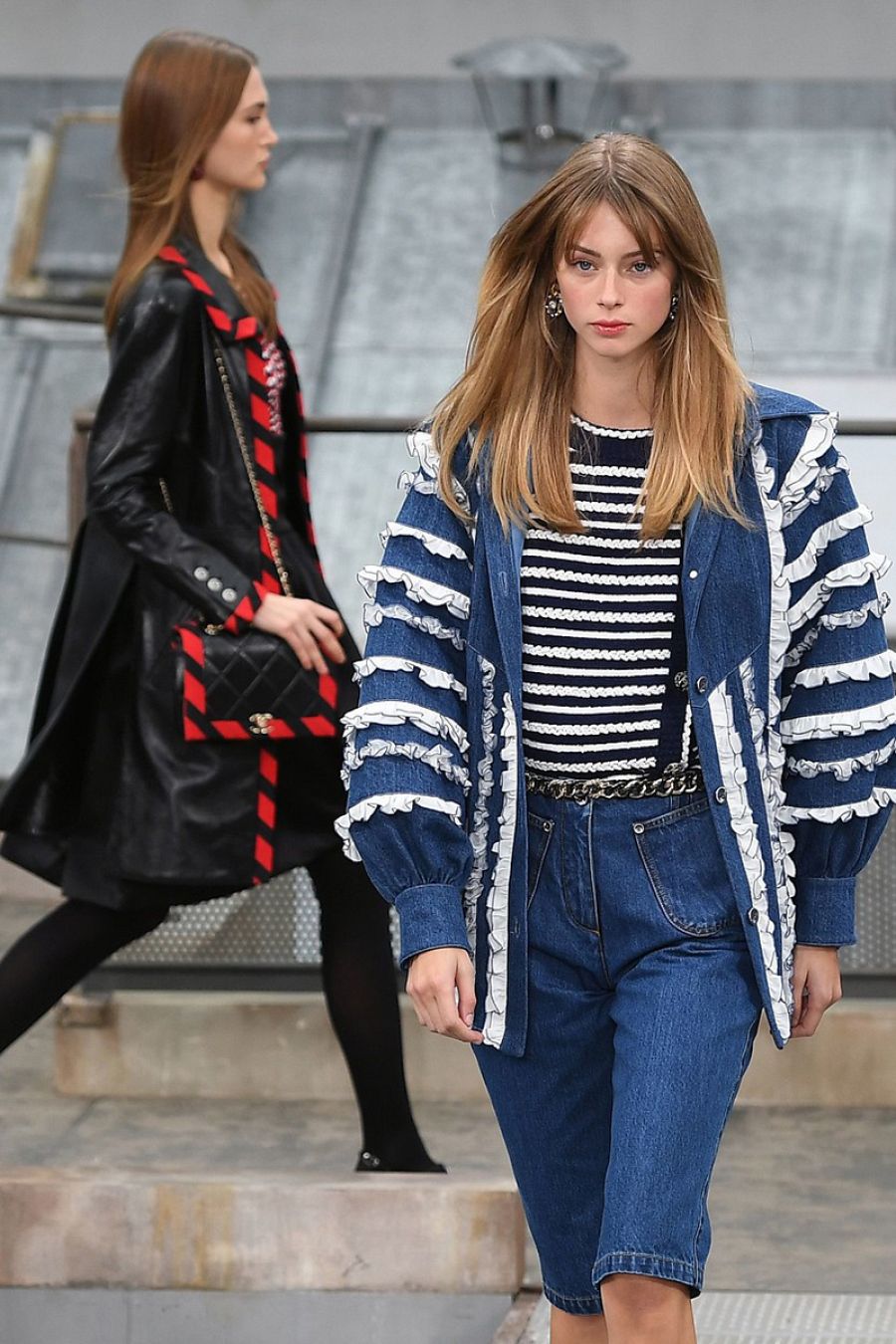 Ahora han reproducido los tejados y azoteas de París para que las modelos caminaran con la colección de primavera y verano de 2020. “Los tejados de París me recuerdan la atmósfera de la Nouvelle Vague. Vi siluetas caminando por los tejados y pensé en Kristen Stewart interpretando a Jean Seberg y todas las actrices que Gabrielle Chanel vistió”, dice Viard que ha hecho desfilar a sus modelos junto a azoteas, ventanas y chimeneas. Entre ellas, famosos rostros como Kaia Gerber y Gigi Hadid que ha tenido que lidiar con la espontanea que se ha colado en el carrusel final. Una infiltrada que se ha hecho viral y que se trata de la youtuber y actriz cómica Marie Benoliel.