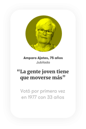 Amparo votó por primera vez con 33 años, siempre ha sido muy activa, cree en el poder de la política para cambiar las cosas. “Hay que ir a votar para luego poder protestar, si no votas, aceptas lo que hacen los demás”. Los más jóvenes lo han vivido con nervios ante la novedad, también con indecisión por no saber a quién a votar. Ángela reflexiona sobre el desencanto que hay entre los jóvenes que no sienten que su voto sirva para cambiar nada: “Yo creo que el sentimiento de formar parte de la historia que tienes por ejemplo tú - refiriéndose a Pilar - nuestra generación ahora mismo no lo estamos viviendo tanto”.
