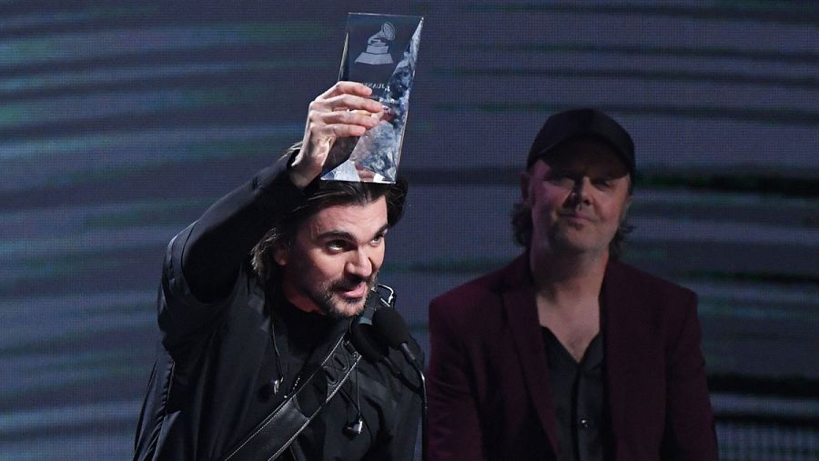 Este jueves interpretó varios de sus temas más conocidos como "A Dios le pido", pero la sorpresa llegó para el colombiano cuando Lars Ulrich, el batería de Metallica, apareció en la gala para entregarle el galardón honorífico.