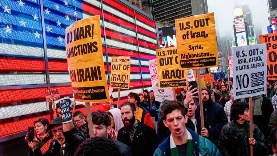 Por otra parte, miles de personas se han echado este sábado a la calle en 70 ciudades de Estados Unidos para pedir la salida de las tropas estadounidenses de Oriente Medio y rechazar el ataque que ordenó el presidente Donald Trump para acabar con la vida del poderoso comandante iraní Qasem Soleimaní.
