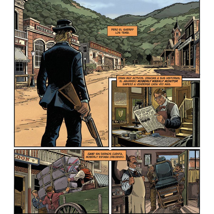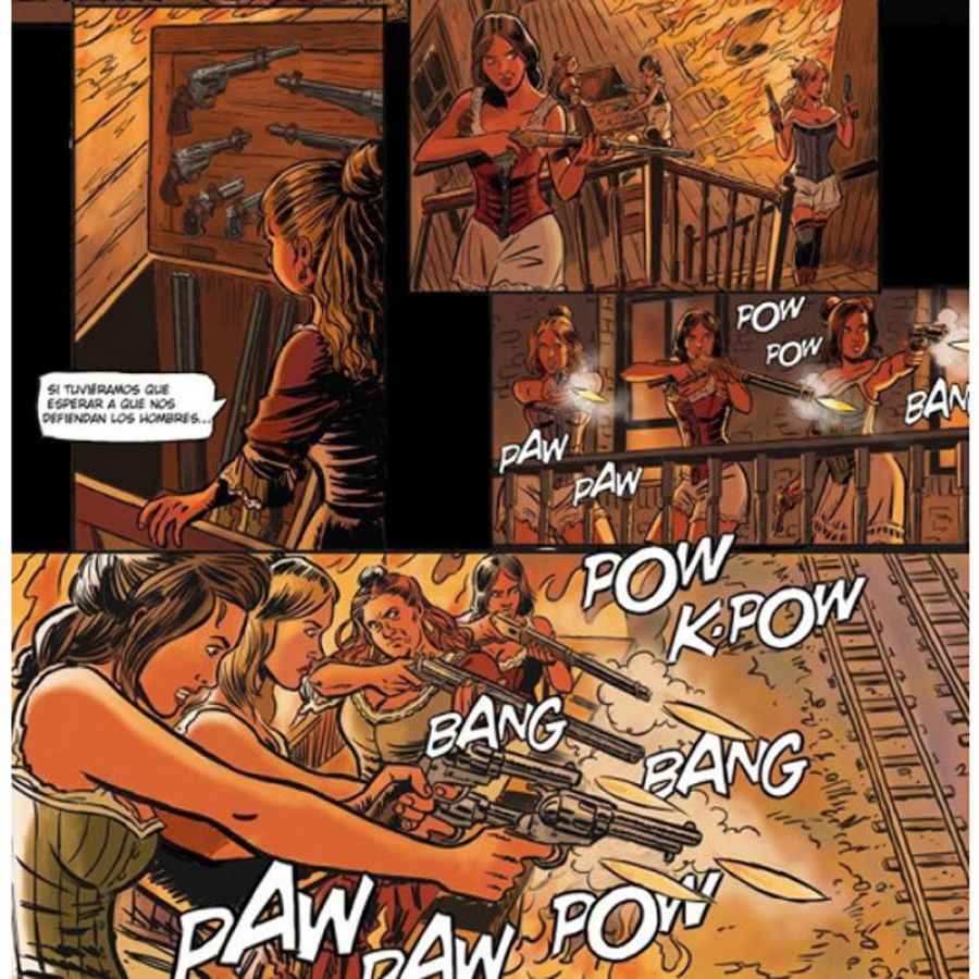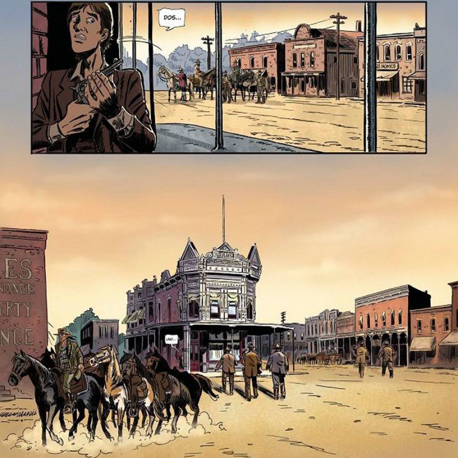 “Hemos intentado, en la medida de lo posible, utilizar fotos de la época -añade Juande-. Tanto en personajes históricos como para los entornos (Coffeyville, Dodge City, El Paso, la colonización del Territorio Indio, etc). Sin olvidar mis principales referentes en el mundo del cómic son el Blueberry de Giraud, Comanche de Hermann o Bouncer de Bouq”.