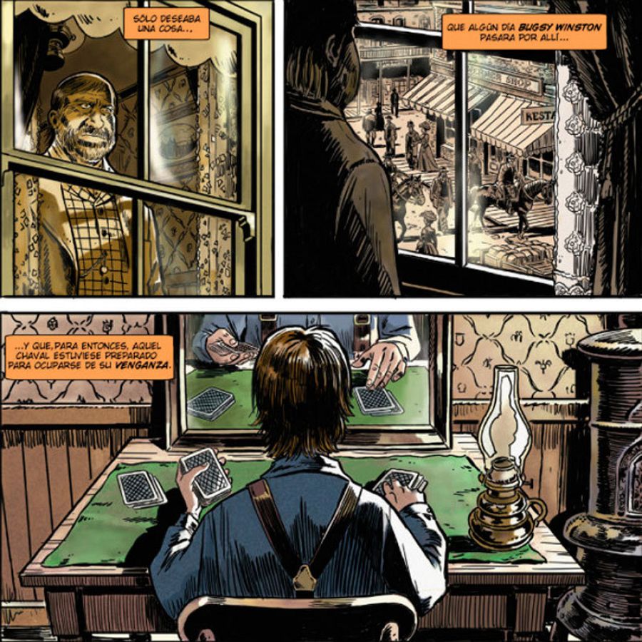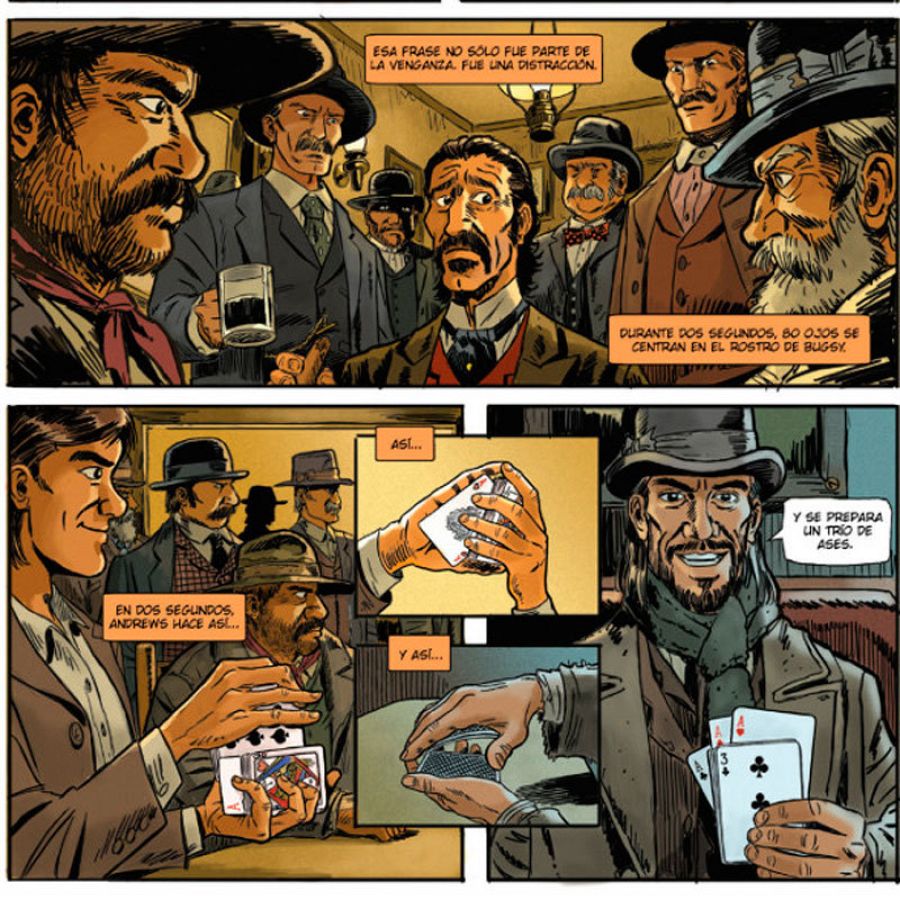 Pero gracias a esos pocos datos, ambos han construido un irresistible timador del que nos habla Juande: “Rodrigo se basó en el personaje real de Erdnase, pero rodeándolo de un halo de misterio. Nuestro Andrews es un tipo avispado que aprende el “oficio” desde muy pequeño. Joven y de aspecto agradable, aunque no tiene problemas en desplumar al primer incauto que se le ponga delante. Le seguiremos en su periplo de jugador por las principales ciudades del Oeste y también en su evolución personal, que le hará plantearse dudas acerca de la honorabilidad de su profesión”.