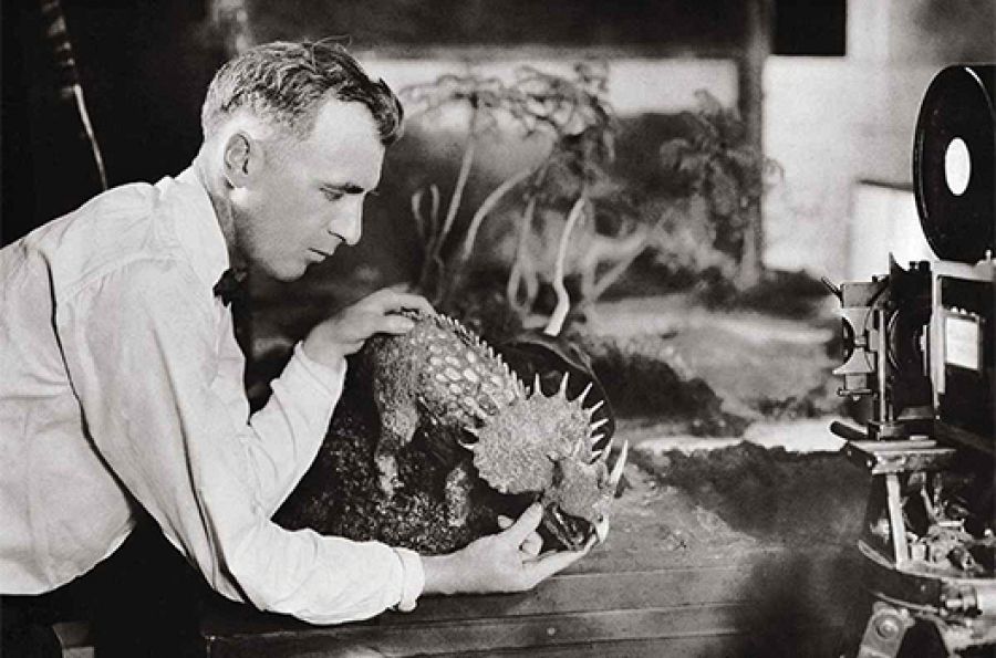 A pesar de las dificultades técnicas, el cine siempre se las apañó para dar vida a los dinosaurios desde principios del Siglo XX., "Sin duda alguna la producción inaugural de este universo cinematográfico fue la brontosaurio Gertie (1910), protagonista de un corto de animación realizado por Winsor McCay. Y si bien Buster Keaton se subía a lomos de un brontosaurio o El gordo y el flaco coqueteaban con esta fauna, la auténtica película inaugural del género fue El mundo perdido (1925). El máximo artífice de devolver a la vida a estos animales para la película fue Willis O’Brien, que ya llevaba varios años plasmando estas bestias mediante la técnica de animación fotograma a fotograma, y que se convirtió en el auténtico padre de los dinosaurios en el cine. Su labor estimularía a un sinfín de artistas, incluido su más emblemático sucesor, Ray Harryhausen".