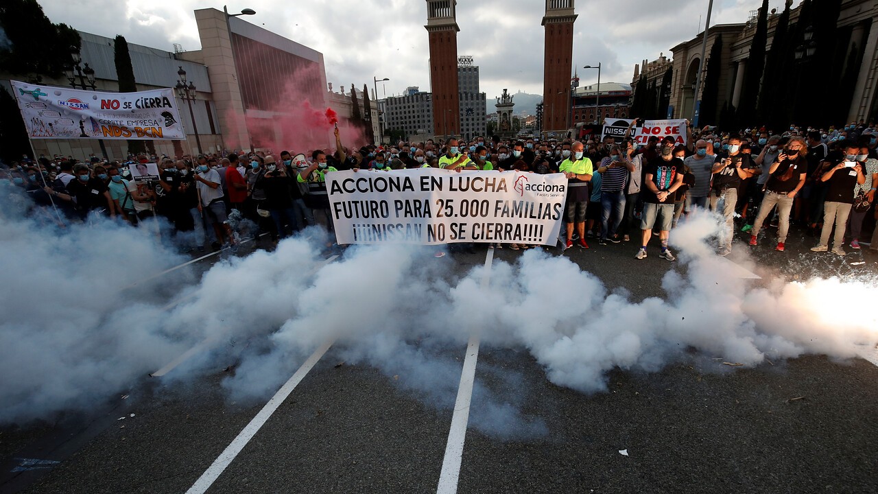 La manifestación han comenzado a las 18.30 horas en la avenida Reina Maria Cristina de Barcelona, donde media hora después se ha leído un manifiesto en japonés dirigido al presidente de Nissan, Makoto Uchida, y otro en francés destinado a la dirección de Renault, socio de la alianza automovilística con la marca nipona y que se encargará de gestionar el mercado europeo.