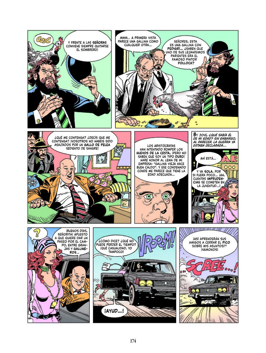Por cierto que, como en las películas de James Bond, nuestros personajes también recorren el mundo para dar sus arriesgdos golpes. En este primer tomo les veremos en Grecia, Inglaterra, Escocia, Italia o París. En este sentido hay que destacar la excelente documentación que manejan tanto el guionista como el dibujante, Ferdinando Tacconi, uno de los mejores de la época. Ambos recrean, a la perfección, los escenarios y costumbres de cada lugar por el que pasan nuestros ladrones.