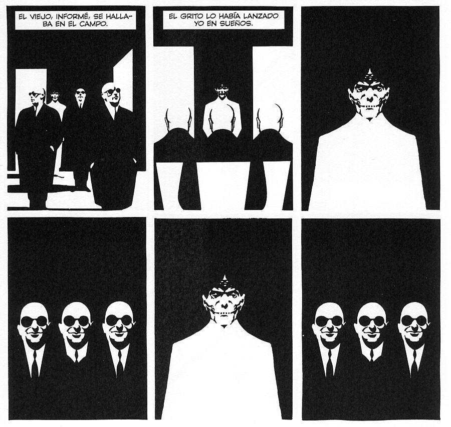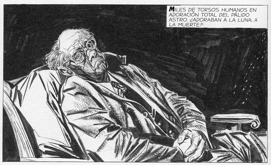 "Los 70 y 80 -continúa Yexus- significan su incursión en el color, las muchas adaptaciones literarias y las muy dispares colaboraciones con Carlos Trillo en todo tipo de publicaciones y países. En los 80 y 90 predomina su trabajo con el novelista y escritor Juan Sasturain, con quien obtiene un premio de Amnistía Internacional. Y en los años previos a su muerte están sus ilustraciones al óleo y su testamento creativo, ese monumental Informe sobre ciegos realizado ya libre de cualquier atadura o condicionamiento".