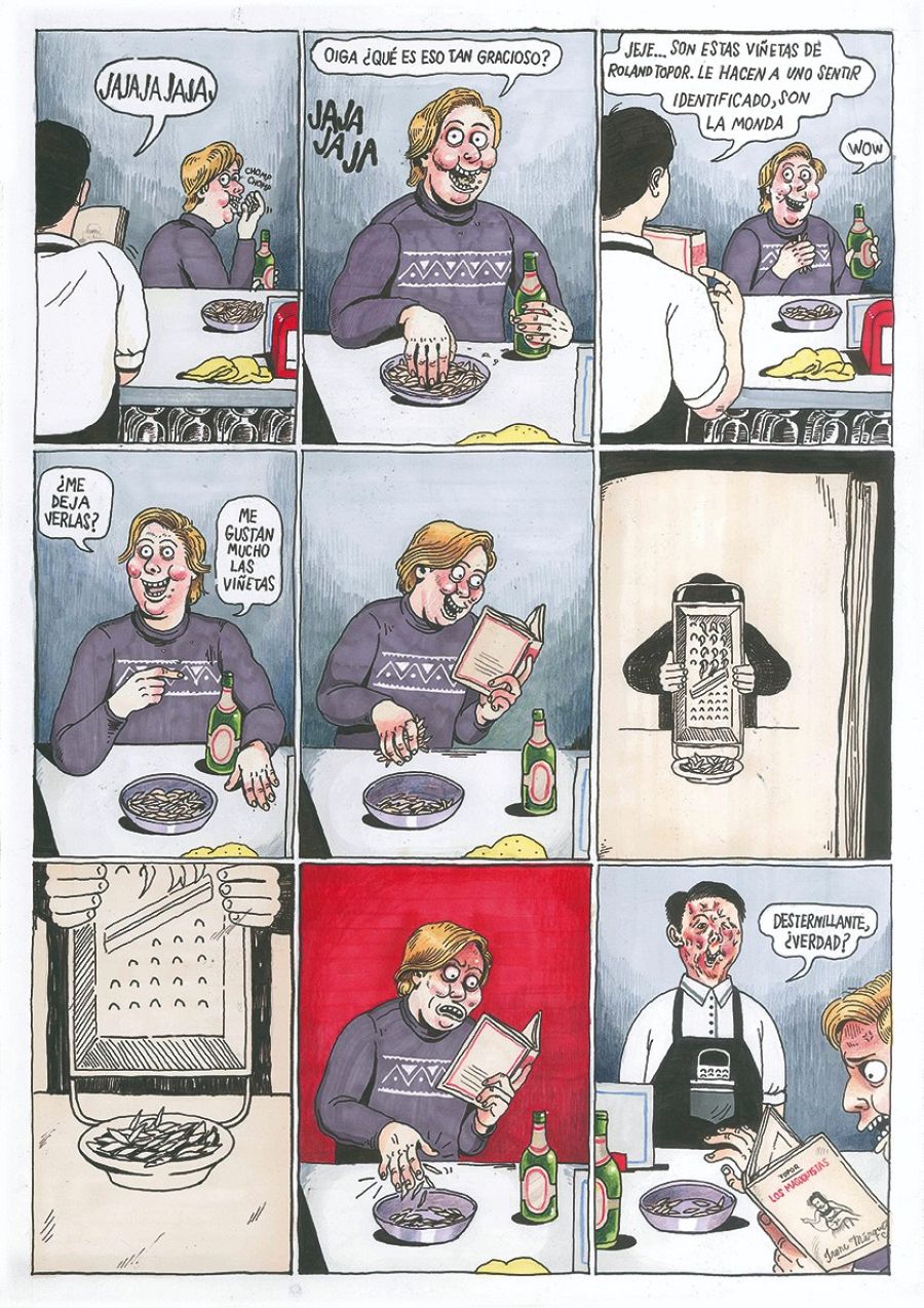 "O La cocina caníbal (uno de los libros más famosos de Topor), homenajeada por Raúlo Cáceres y Bráis Rodríguez. Otro buen ejemplo sería El quimérico Inquilino, que es homenajeado por Gabriel Walta y Javier Olivares, dos autores cuyo estilo de dibujo está en las antípodas del de Topor, pero que admiran profundamente esta novela" -concluye Asier-.