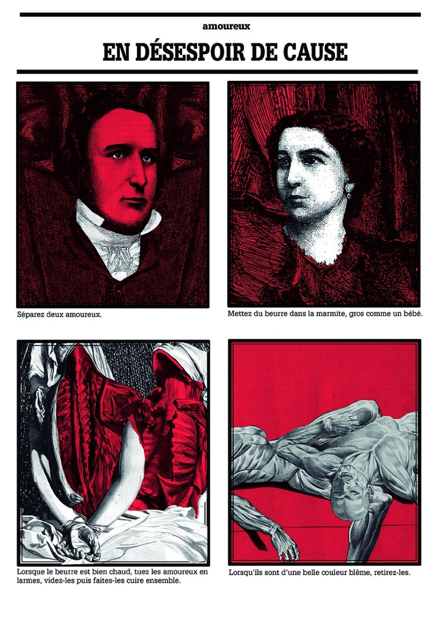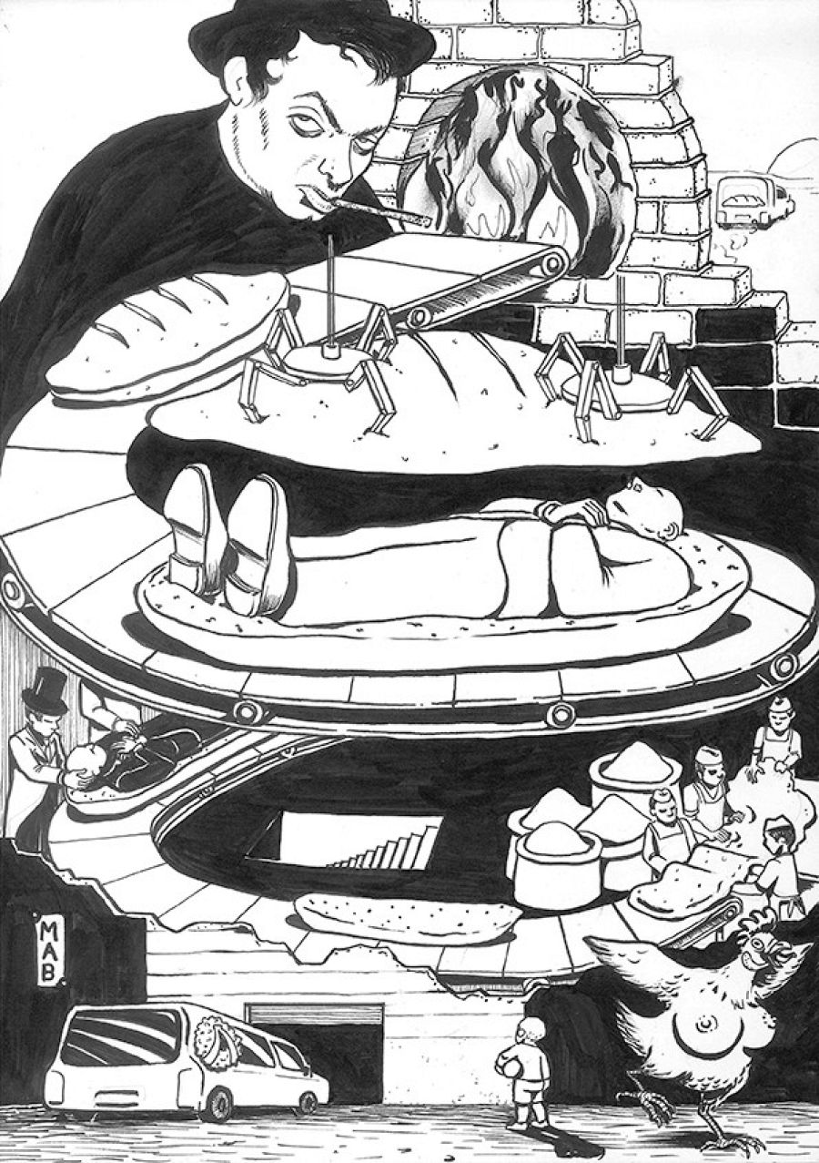 "La tercera obra que quiero destacar es la de Brais Rodríguez -añade el comisario-. No hay un historietista más singular en España. El realiza habitualmente cómics utilizando entre otras técnicas el collage. Para la ocasión, ha hecho un comic-collage sobre una de las recetas de La cocina caníbal, usando grabados decimonónicos, cuyo resultado es muy toporiano".