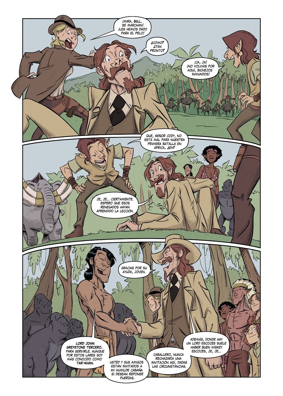 "La historia -nos avanza Carlos- cuenta la expedición, financiada por el National Geographic, de Bill y sus compañeros, en pos del último dragón, que se dice habita en África, compitiendo por llegar antes que la expedición británica, comandada por Allan Quatermain. En su camino encontrarán dragones, arácnidos, y muchos seres fantásticos que harán las delicias de los lectores".