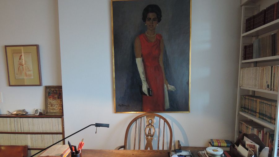 Mesa donde escribía Delibes con el retrato de su mujer 'Señora de rojo sobre fondo gris' Fundación Miguel Delibes