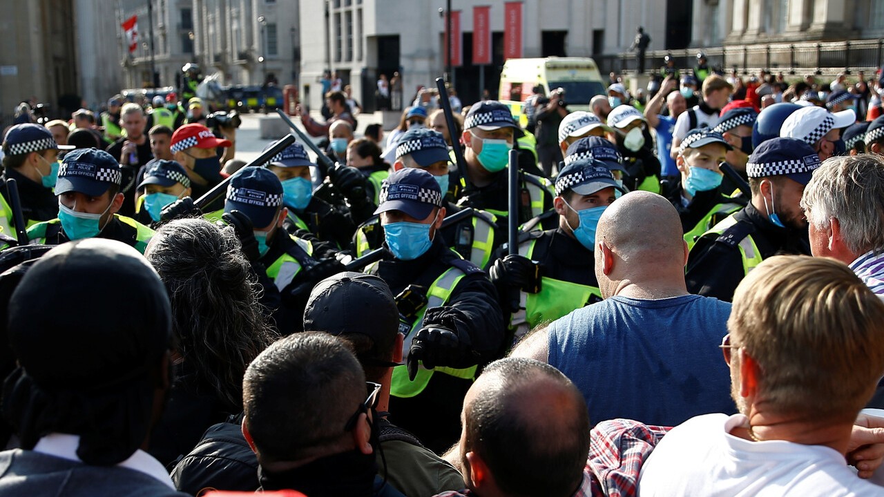 La policía metropolitana de Londres ha informado en un comunicado de que los asistentes a la protesta "no han cumplido con las condiciones de su plan de riesgos y están poniendo a la gente en riesgo" por la posibilidad de contagios. Por ese motivo, las fuerzas del orden han pedido a los manifestantes que disolvieran el acto.