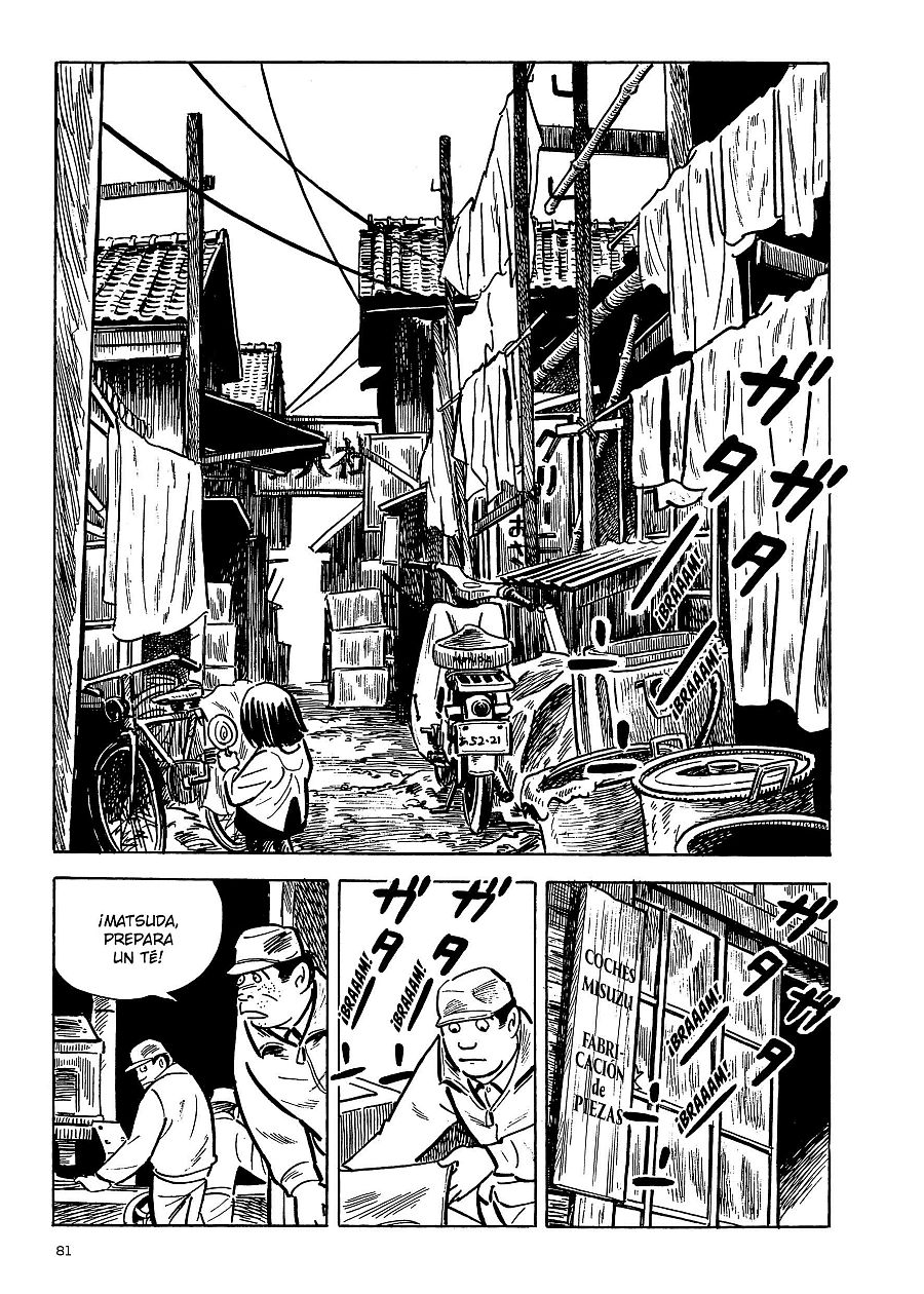 Nada sobra en estas historias. Cada viñeta nos cuenta algo sobre los personajes o describe el Tokio de esa época (todavía en reconstrucción tras la guerra), que es otro de los grandes protagonistas de la historia. Y los dibujos de Tatsumi (inspirados en Tezuka) huyen de las florituras para limitarse a retratar la realidad.