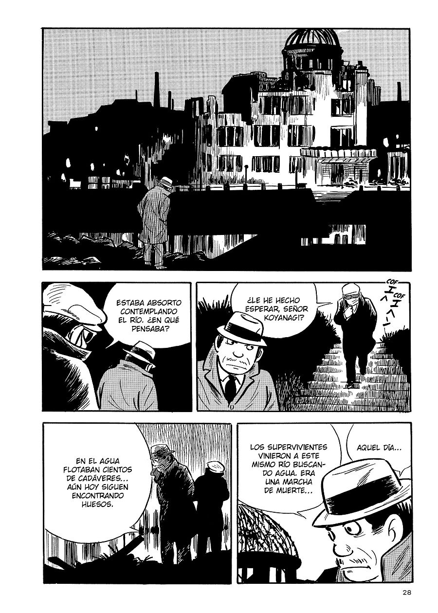 Por eso la primera narración se centra en una de las famosas "sombras de Hirosima" (esas siluetas de las víctimas en paredes, que fue lo único que quedó de ellas debido a la explosión y el calor). Una historia que parece comenzar con un rayo de optimismo y esperanza pero que, bajo la batuta de Yoshihiro, no tardará en volverse una muestra de las bajezas del ser humano y de lo ruines que podemos llegar a ser.