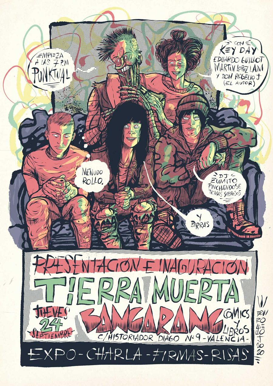 "Es dificil para mi definir que es Tierra muerta -confiesa Don Rogelio J.-. A veces me da por decir que es un simple tebeo de ciencia ficción, otras que un libro de autoficción... Depende de lo pretencioso que me levante ese día. Lo que sí puedo asegurar es que es la historia de una banda de gira".