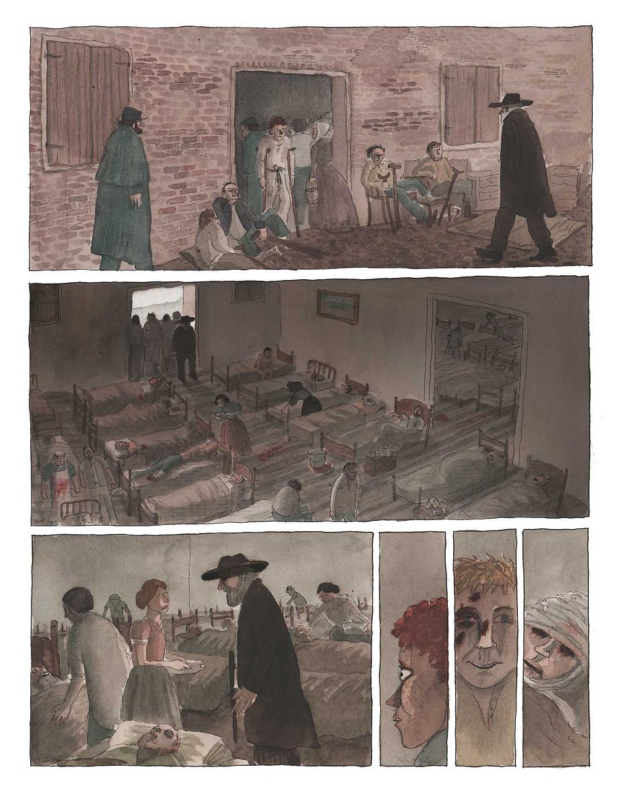 En el cómic Tyto no solo recrea la Guerra de Secesión sino también episodios históricos tan importantes como el asesinato de Abraham Lincoln o la construcción del Capitolio. “Dibujar guerras es divertido porque a algunos nos devuelve a la infancia -confiesa-, pero me centro mucho más en los hospitales y los heridos. Comprendiendo todo ese dolor creo que las escenas de guerra han quedado tristes y sombrías.