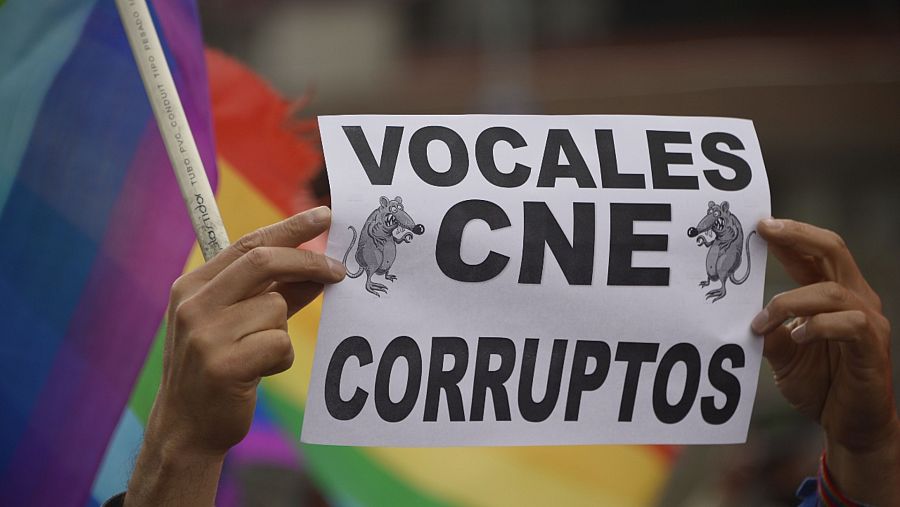 Tras presentar la denuncia, Pérez y los suyos han ido hasta la sede del CNE en Quito, donde el movimiento indígena mantiene una vigilia por la transparencia en las elecciones.