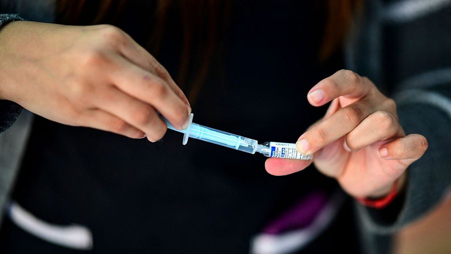 Una trabajadora sanitaria preparando una vacuna Sputnik-V en Buenos Aires.