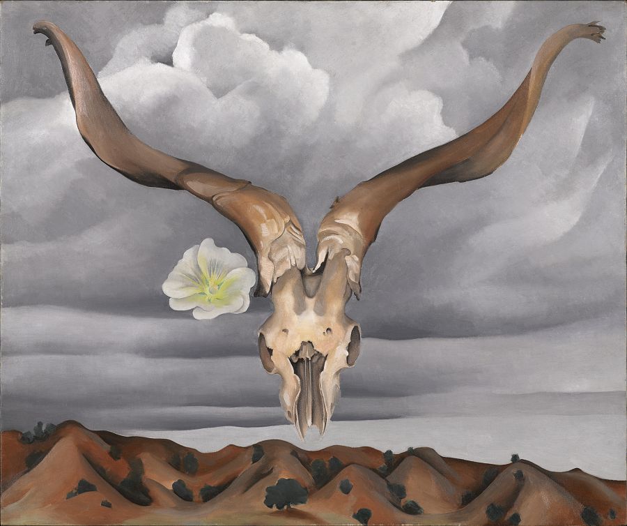 "Colinas (Cabeza de carnero y malva real blanca, Nuevo México)", 1935. Georgia O'Keeffe. Brooklyn Museum, legado de Edith y Milton Lowenthal