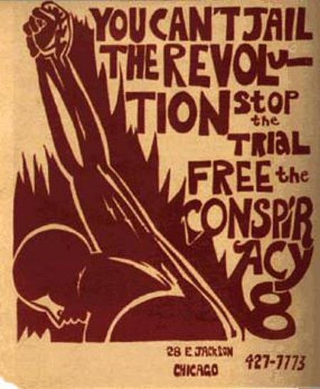 Cartel de apoyo a los activistas juzgados en Chicago. Wikipedia