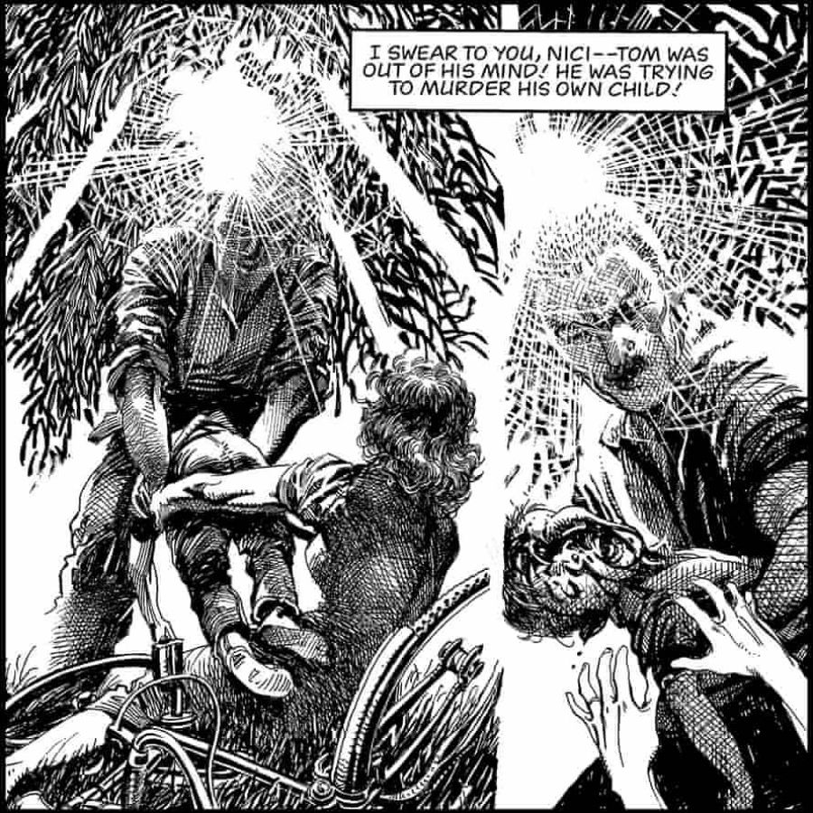 Como os podéis imaginar esa apropiación de sus ideas no le sentó muy bien a Barry y decidió pasear su historia por otras editoriales. Y durante estos 35 años la idea fue creciendo de las 100 páginas originales a las casi 400 finales, y ganando en interés y complejidad, hasta deleitarnos con esta maravilla.