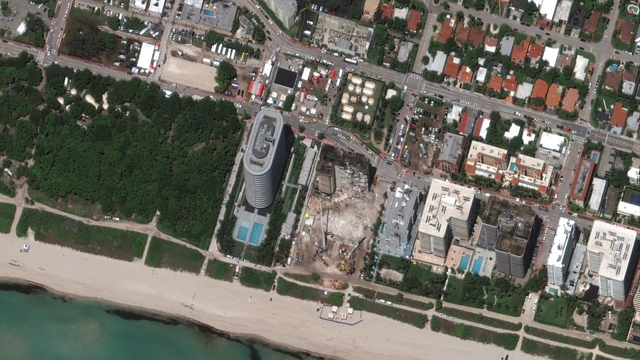No se ha informado de cuándo comenzará la demolición de la parte que queda en pie del edificio de 40 años de antigüedad, pero se ha advertido que debe hacerse antes de la posible llegada de la tormenta tropical Elsa, que se espera que el lunes se acerque al estrecho de Florida.