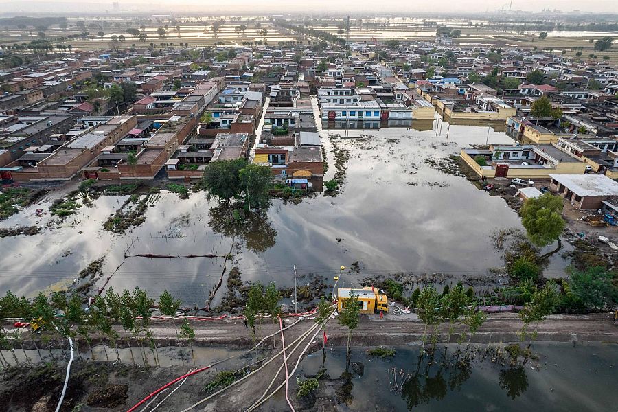 Imagen aérea de una de las zonas anegadas de la provincia de Jiexiu, en Jinzhong city STR/AFP
