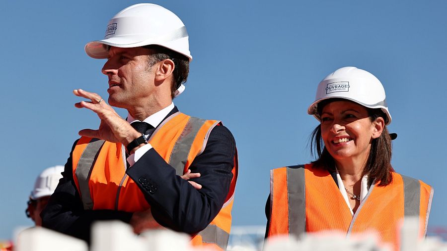 La alcadesa de París junto al presidente francés, Emmanuel Macron.