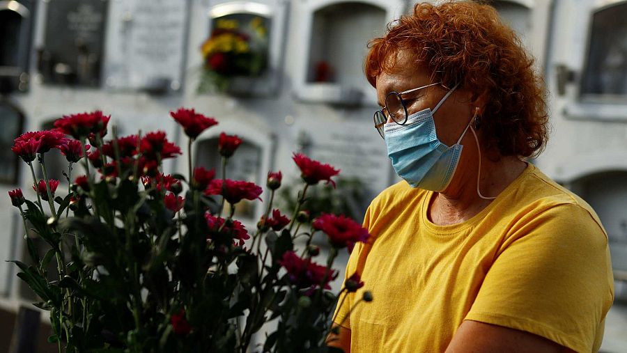 Una mujer adecenta un ramo de flores en La Palma REUTERS/Borja Suarez