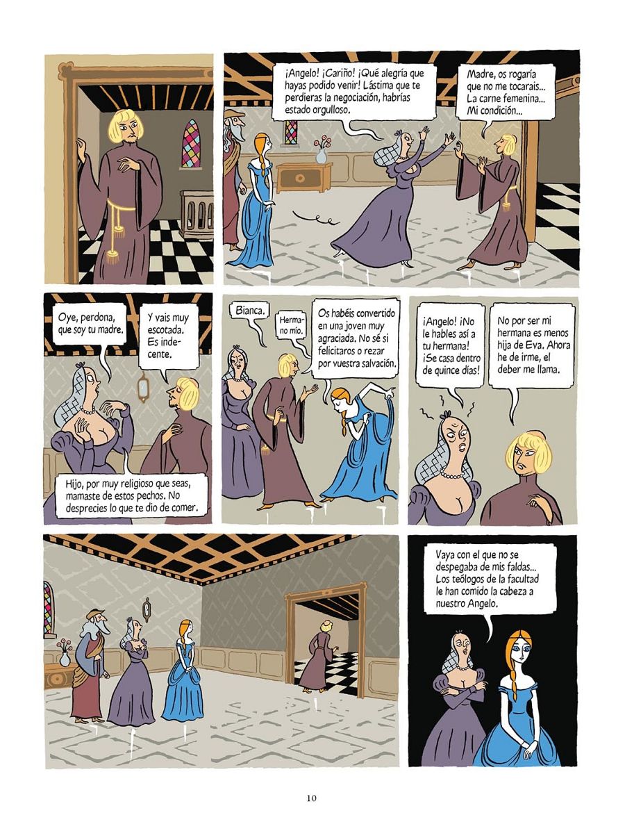 El cómic nos muestra que en la Edad Media las mujeres eran poco menos que "otras propiedades" de los hombres. No tenían ni voz ni voto y se las podía humillar constantemente sin ningún límite. Evidentemente, hemos avanzado mucho desde entonces, pero seguro que esas actitudes machistas de algunos de los protagonistas os recuerdan a alguien que conocéis. Por eso el cómic nos hace reflexionar sobre el peso de los roles de género, las apariencias y las convenciones sociales.
