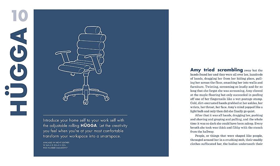 Pero no olvidemos que, además de un catálogo de muebles, este libro es una terrorífica pesadilla en la que entraremos por las ofertas de sillas y nos quedaremos por las emociones fuertes.
