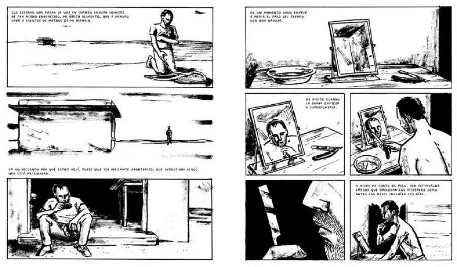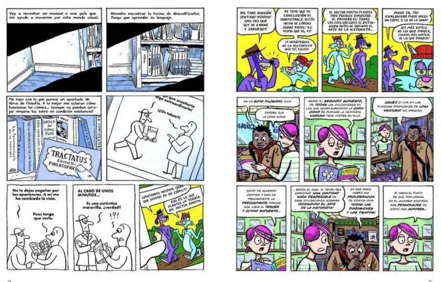 “Otra de las influencias fundamentales de este cómic, en ese sentido, es Hicksville, de Dylan Horrocks, donde creaba todo un universo de cómics imaginarios a partir de cómics auténticos. Por ejemplo, imaginaba una novela gráfica de Jack Kirby que había enviado a esa pequeña biblioteca de Nuea Zelanda, donde nadie iba a leerlo, que es una idea muy de ese Taller de literatura potencial, del que hablaba antes, y que también nos vuelve a remitir a Calvino. Para mí es fascinante esa idea de una obra que se puede imaginar pero no se puede leer. Y la he usado en algunos de los relatos del libro, como en esa parodia de Condorito con toques de Beckett, que se supone que tiene más de 800 páginas pero del que solo podemos leer cuatro… Es un libro potencial que nunca vamos a poder leer Esa idea de libros imaginarios me fascina”.