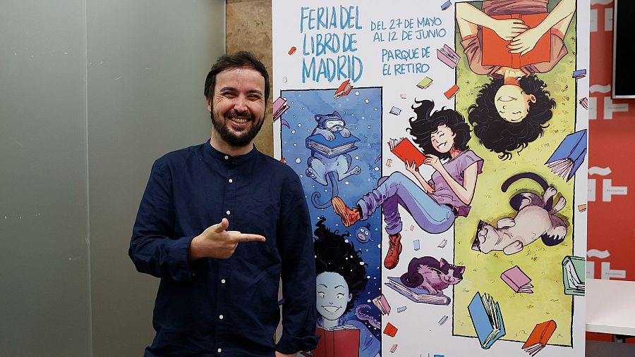 Eva Orúe, que se estrena como directora de la Feria del Libro de Madrid, ha destacado que el autor del cartel ha dibujado el "estado de ánimo lector".