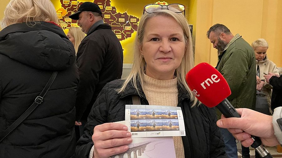 A punto de conseguir el sello también está Inga, de la región de Kiev. Está en Leópolis, desplazada por seguridad, huyendo de la guerra, y en su caso quiere enviárselo a su hija, que está fuera. "Ella nos está enviando el dinero para estar aquí a salvo. Está muy preocupada", nos dice emocionada. Olga, que habla castellano perfectamente, nos dice que ha tenido que hacer dos días la cola, para poder conseguir este sello que es "un símbolo de nuestra unión, de la lucha de nuestro país", aunque lamenta que hay quien ya lo está viendo como un negocio.