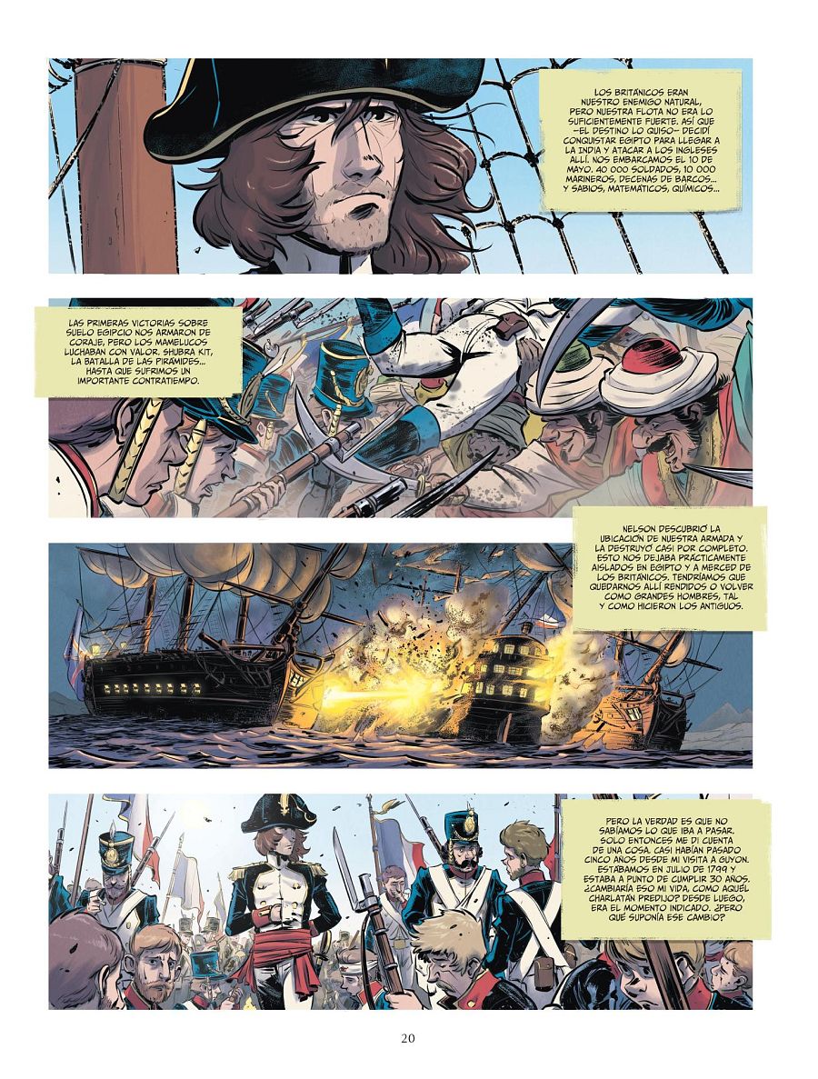 “En esa época –continúa el guionista-, Francia barajaba invadir el Reino Unido, pero él convenció al directorio de que era mejor cortar sus rutas comerciales con Asia. Y por eso buscó un camino hacia el este en Egipto. Era una apuesta muy alta porque los europeos no se había explorado esa zona desde hacía siglos. Además, Nelson destruye sus barcos, dejándolo sin posibilidad de retirada. Por tanto, él solamente puede salir de allí muerto o en la gloria”.