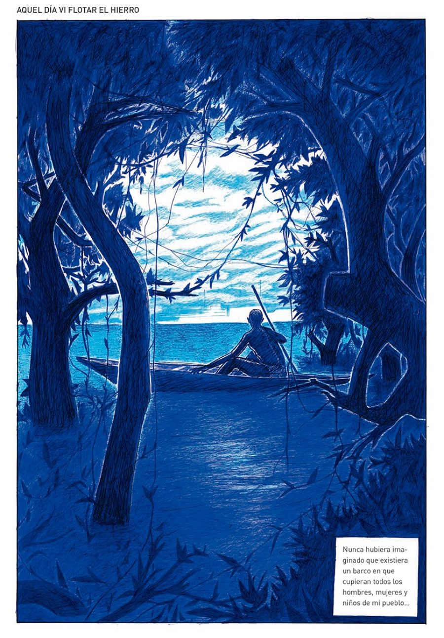 “Ese viaje mítico de remontar un río, ya sea en busca del Dorado o de un cementerio de elefantes sigue funcionando como motivación para mí –añade Ortín-. En el cómic también intentamos inventarnos una mitología sobre esa expedición real que pasa por nuestras manos, nuestras cabezas y nuestros corazones. Es una idea mítica, una alegoría que nos sirve para pensar también en cuántas de esas verdades inventadas sobre África han construido la realidad de ese lugar, de esas gentes, culturas y sociedades. Hay demasiada gente viviendo de los fantasmas de África, unos fantasmas que sólo existen en las cabezas de los blancos”.