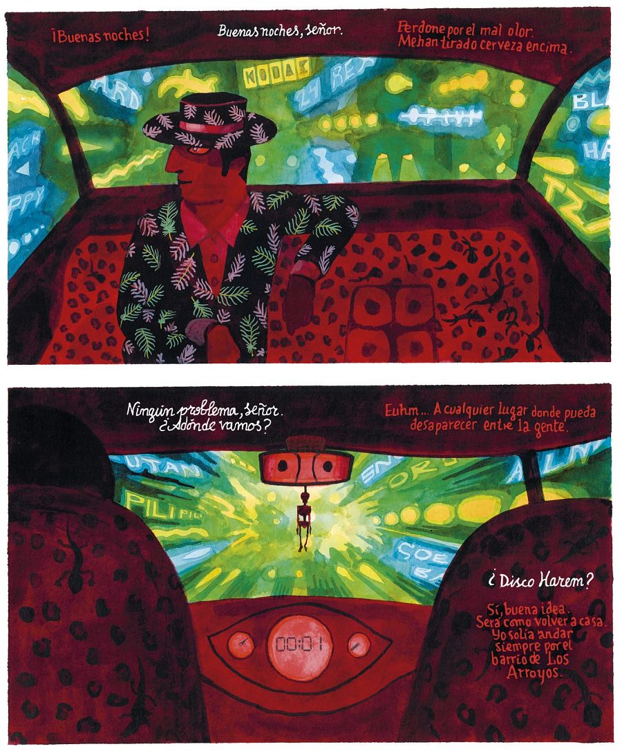 Esa noche que retrata Bretch Evens, llena de luces y colorido, a veces nos recuerda al decorado de un musical de Hollywood de los años 30. “El cómic tiene mucha influencia expresionista –nos confiesa el artista-. Juego mucho con el color y las luces, que me sirven para resaltar las emociones, pero no solo los momentos de euforia sino también los patéticos”.