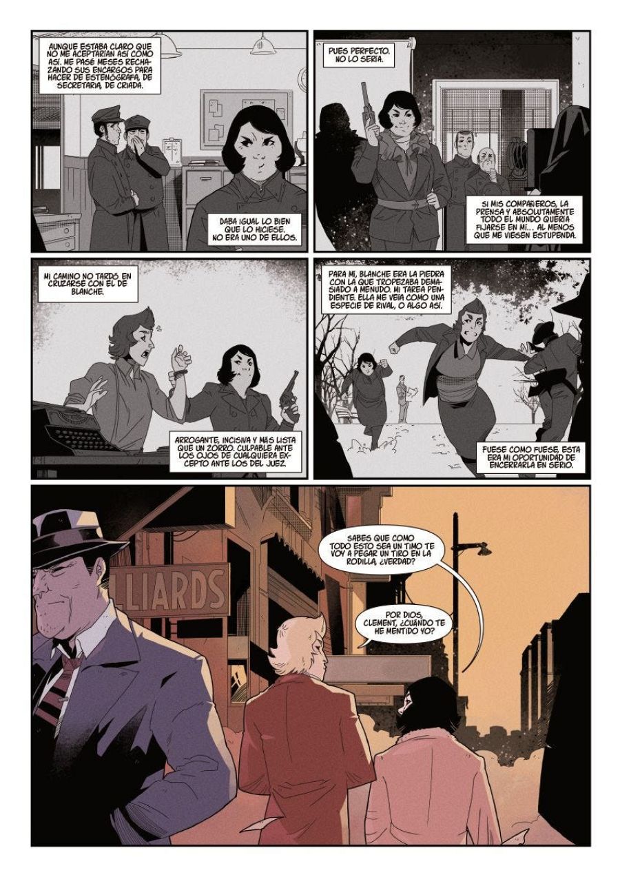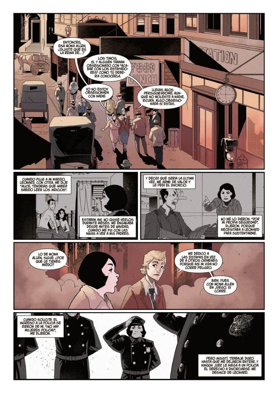“Alice Clement fue la primera inspectora de policía de Chicago -nos comenta Marc-, un personaje real que fue tan famoso en su momento que tenía hasta columnas semanales en los periódicos siguiendo sus casos. Y que, para variar, el patriarcado se dedicó a borrar de la historia”.