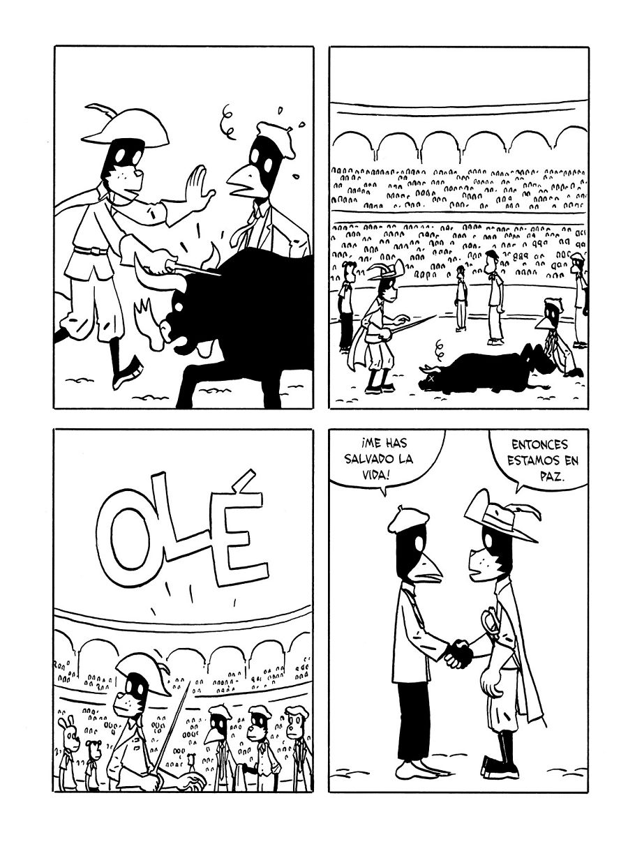 Una fabulosa mezcla de realidad y ficción, del universo de Hemingway y del de Jason, que es un homenaje a uno de los grandes escritores del Siglo XX y su relación con Pamplona y los Sanfermines. Por cierto, que no es la primera vez que Jason pasa por Pamplona en sus cómics. Ya lo hizo en el también imprescindible Un gallego en el camino de Santiago (Astiberri, 2017).