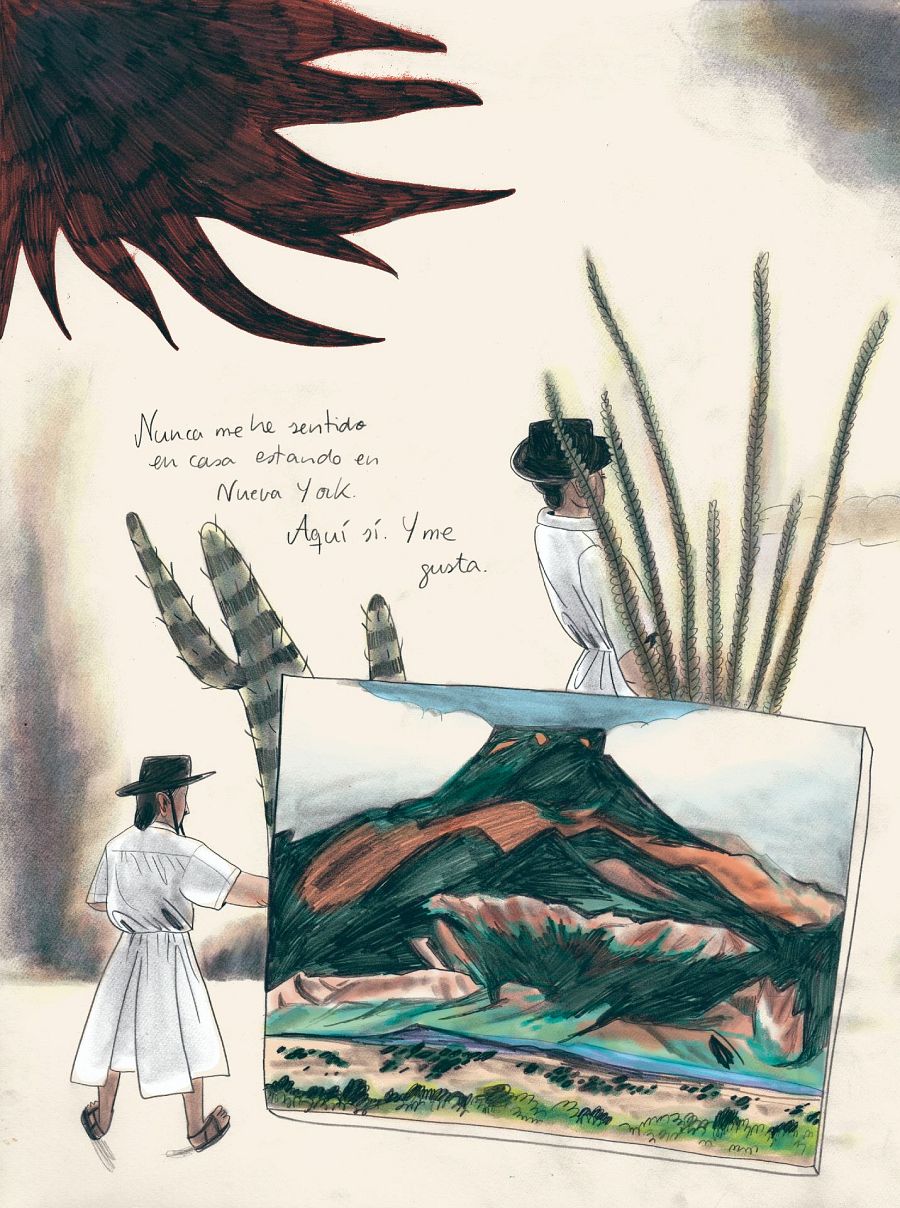 Preguntamos a María hasta qué punto le influyó el arte de Georgia a la hora de realizar la novela gráfica: “Su obra me ha inspirado mucho pero (al menos de manera intencionada) no me ha influido. He tratado de mostrar a Georgia a mi estilo y acercarme más a su lado íntimo”.